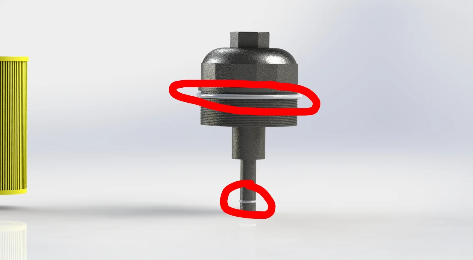 Etter att du har tatt av oljefilteret, så vill du stå igjen med dette (Bildet ovenfor). Etter dette så kan du bare ta av de to pakningene som sitter på lokket. (På noen biler så kan den nederste pakkingen befinne seg på selve filteret. Hvis den gjør det, så kan du bare kaste den sammen med oljefiltere.
